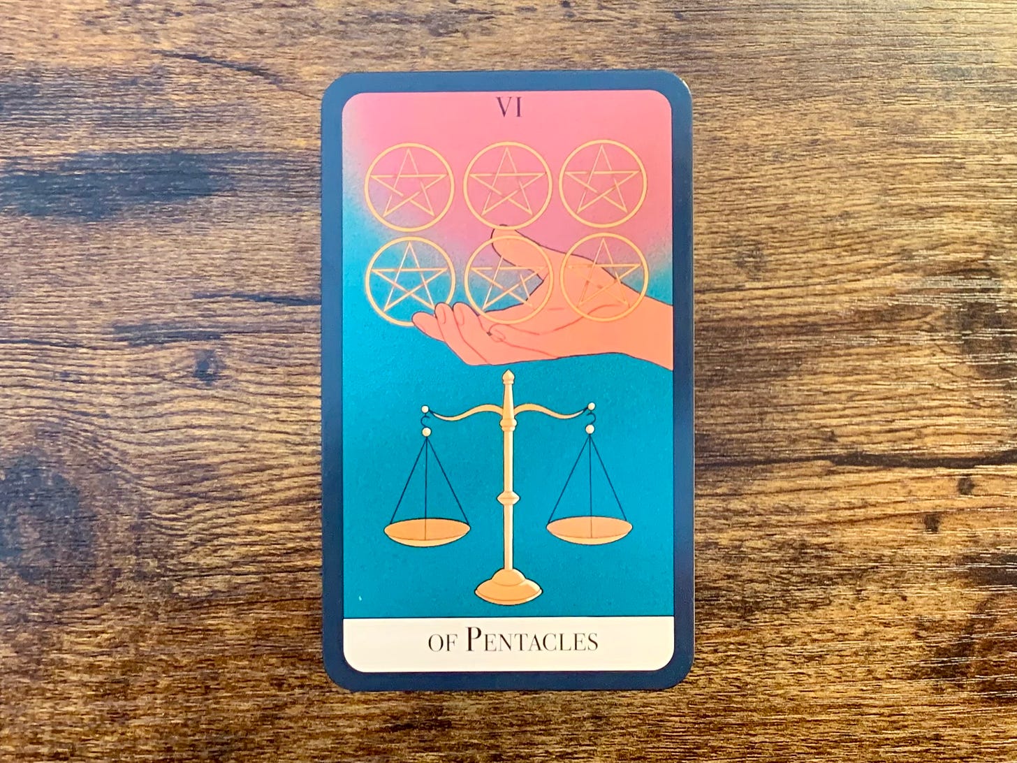 Pentacles are often associated with money and finances - this suit is even referred to as the suit of Coins in many decks - but I find that physical resources often go far beyond the cash we’re taught to consider the most valuable resource possible.
