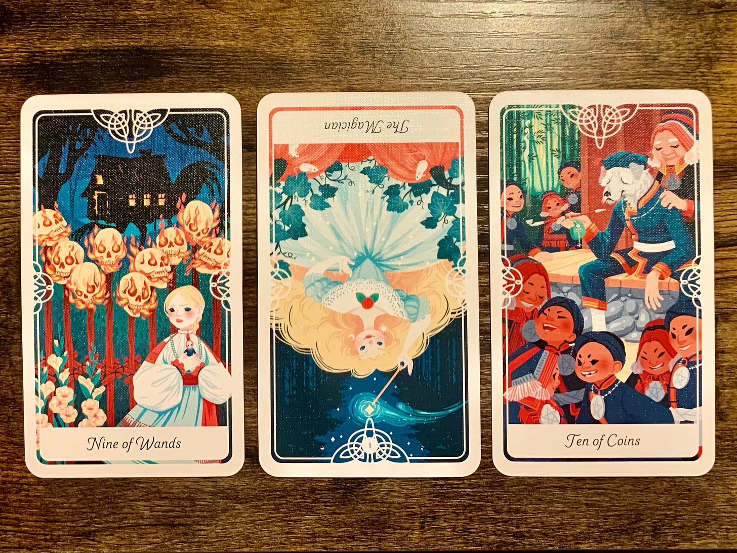 The Magician’s numerology is indicative of the very beginning of a cycle, and being that it’s also a card from the Major Arcana, it’s something to pay attention to. Especially in conjunction with the IX of Wands, there’s definite “go back to the beginning and make sure it’s done the way it needed to be” energy happening here.