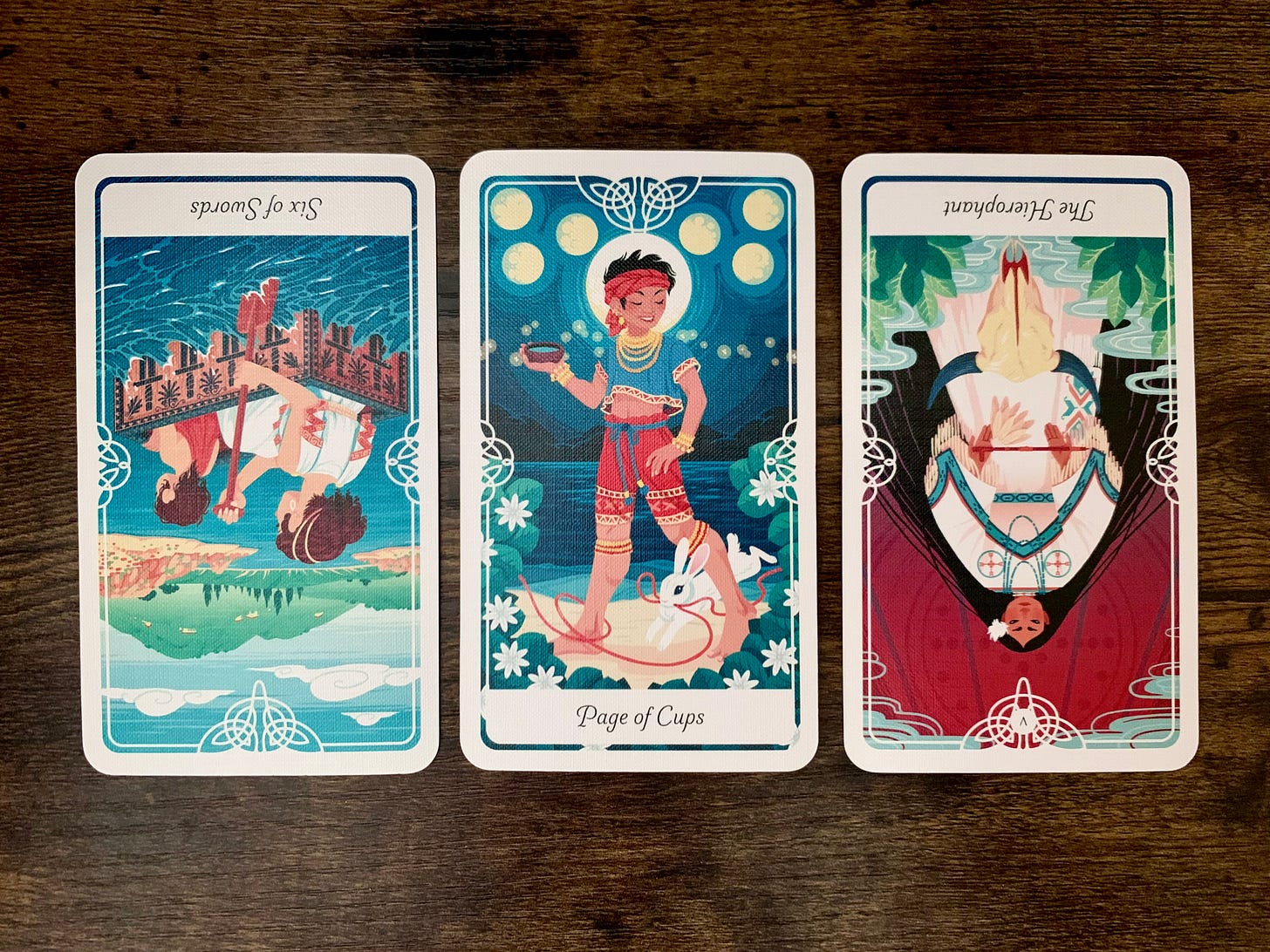 As someone who routinely forgets things and has to take their time processing things, the VI of Swords reversed often feels like a supportive friend. The suit of Swords is one that can feel fraught with strife and sorrow, but when those naturally anxious expressions get blocked with a reversal, it’s like a sigh of relief.
